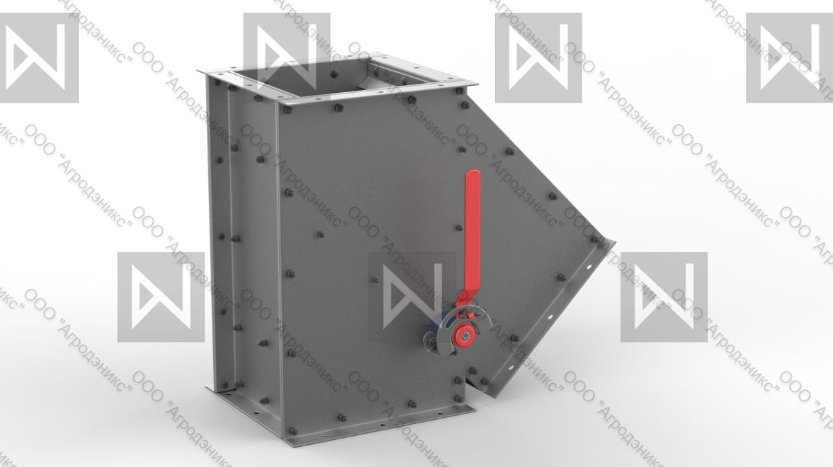 Клапан с электрическим/ручным приводом используется для перенаправления потока зерна из входного самотечного канала в один из двух ответвлений, путем перекрытия шибером не задействованного канала.
