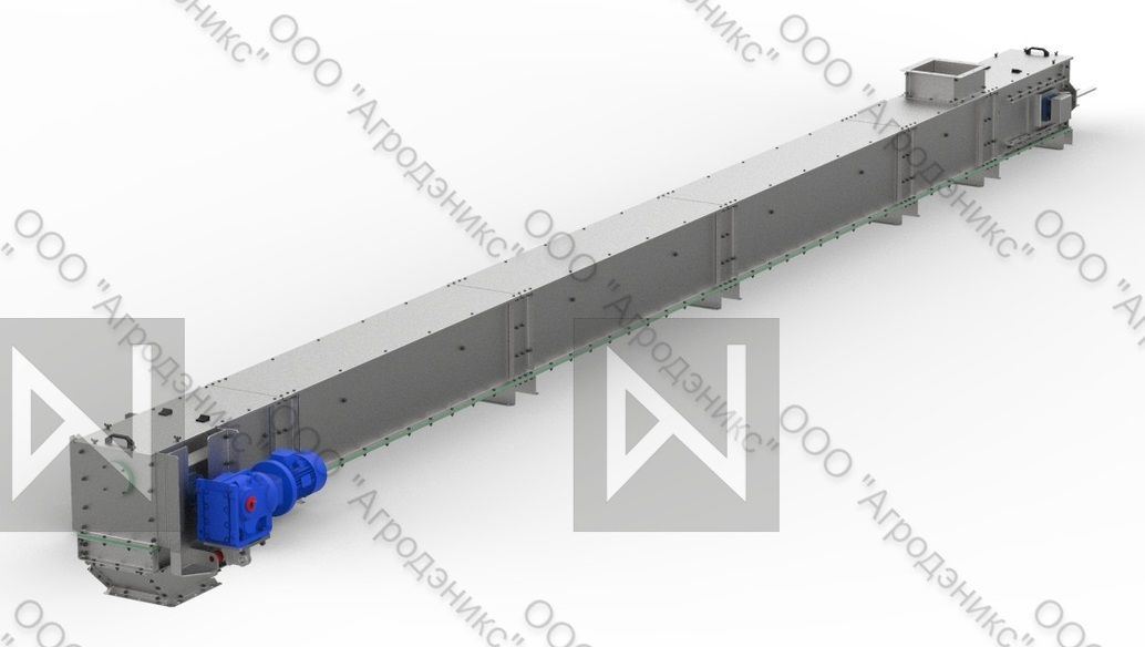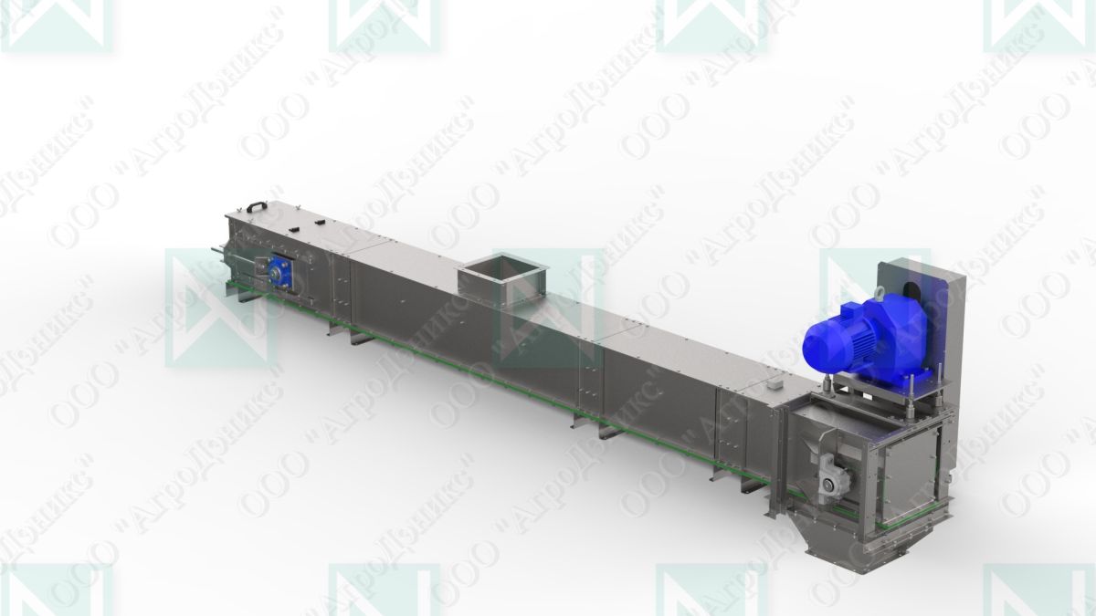 Конвейер цепной представляет собой стационарное устройство, предназначенное для горизонтального, либо в некоторых случаях, наклонного (не более 17°) перемещения всех видов зерновых культур, рапса, зерна кукурузы и семян бобовых и прочих.