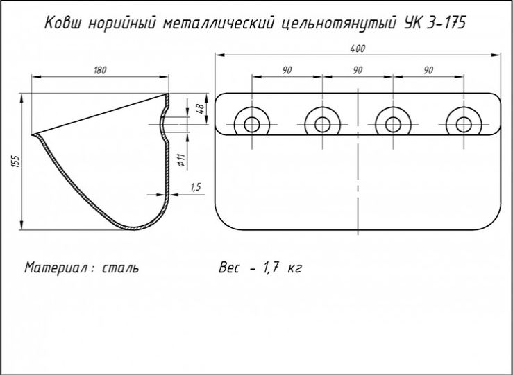 Ковш нории используется для захвата, подъема, а также вертикального перемещения и выгрузки различных сыпучих материалов. Цельнотянутый ковш имеет плавные закругленные формы, т.е не имеет «концентраторов» износа и исключает налипание зерна.